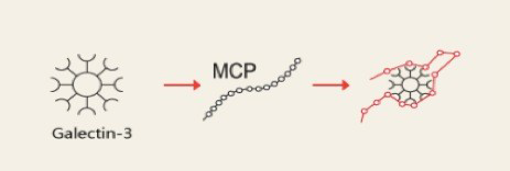 MCP can bind to tumor associated protein galectin-3, the key cell affecting tumor growth and metastasis. MCP molecule has a linear long-chain structure. After be absorbed into the blood, MCP can quickly bind to galectin-3 and block it[1].