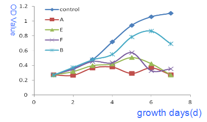 Control group was treated by PBS and culture, A, B, E, F was treated by different MCP and culture. A was the MCP from Gold Kropn.The inhibition rate of MCP to MDA-MB-231 cell has been increased when combination with 5-Fu, cis-platinum or taxol. It is shown in figure 2,3,4.