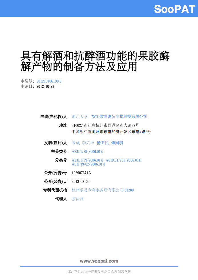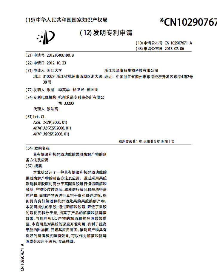 • 具有解酒和抗醉酒功能的果胶酶解产物的制备方法及应用