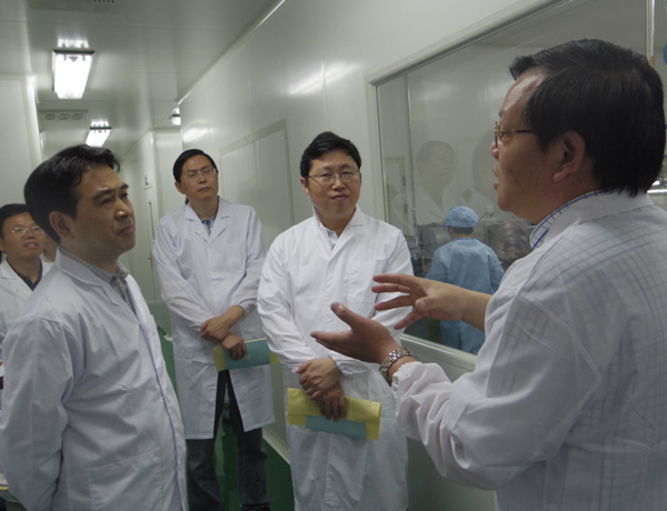 沈市长一行人参观了我司的GMP无菌车间,内包装车间,标准化验室,并且认真听取了公司董事长杨卫民的产品介绍和工作汇报。