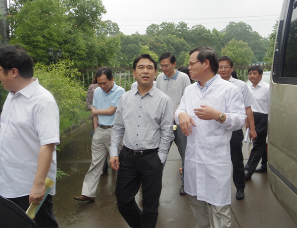 2013年6月14日,衢州市市长沈仁康,副市长胡仲明,市食品药品监督局副局长叶宏等一行冒着滂沱大雨莅临我公司调研指导。