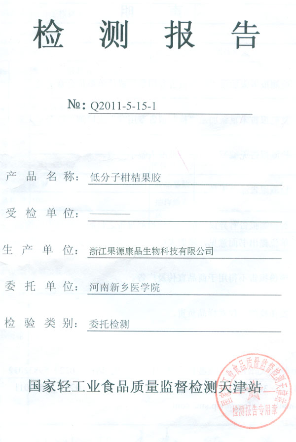 - [Cooperation with Henan Xinxiang Medical College]The Inspection Report on anti-tumor application of Modified Citrus Pectin