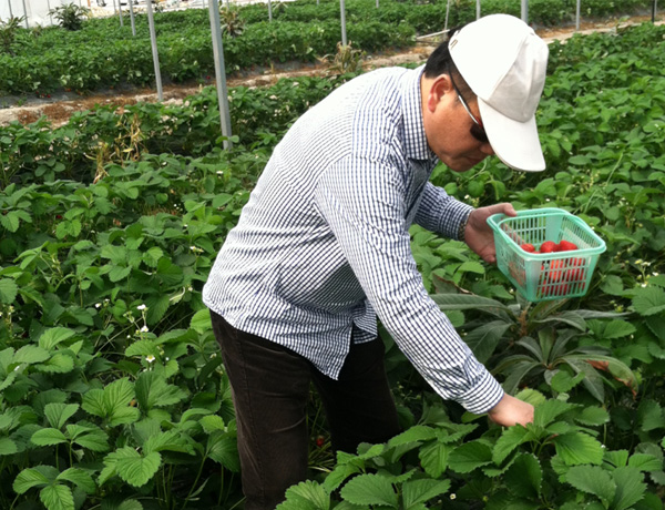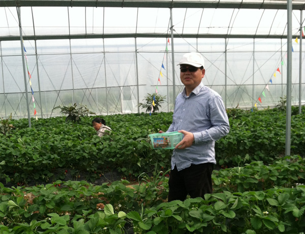 在草莓园基地,杨总亲自拿着篮子挽起袖子到大棚下与员工们一起采摘草莓。大家都非常开心,也实践了公司崇尚自然的理念。
